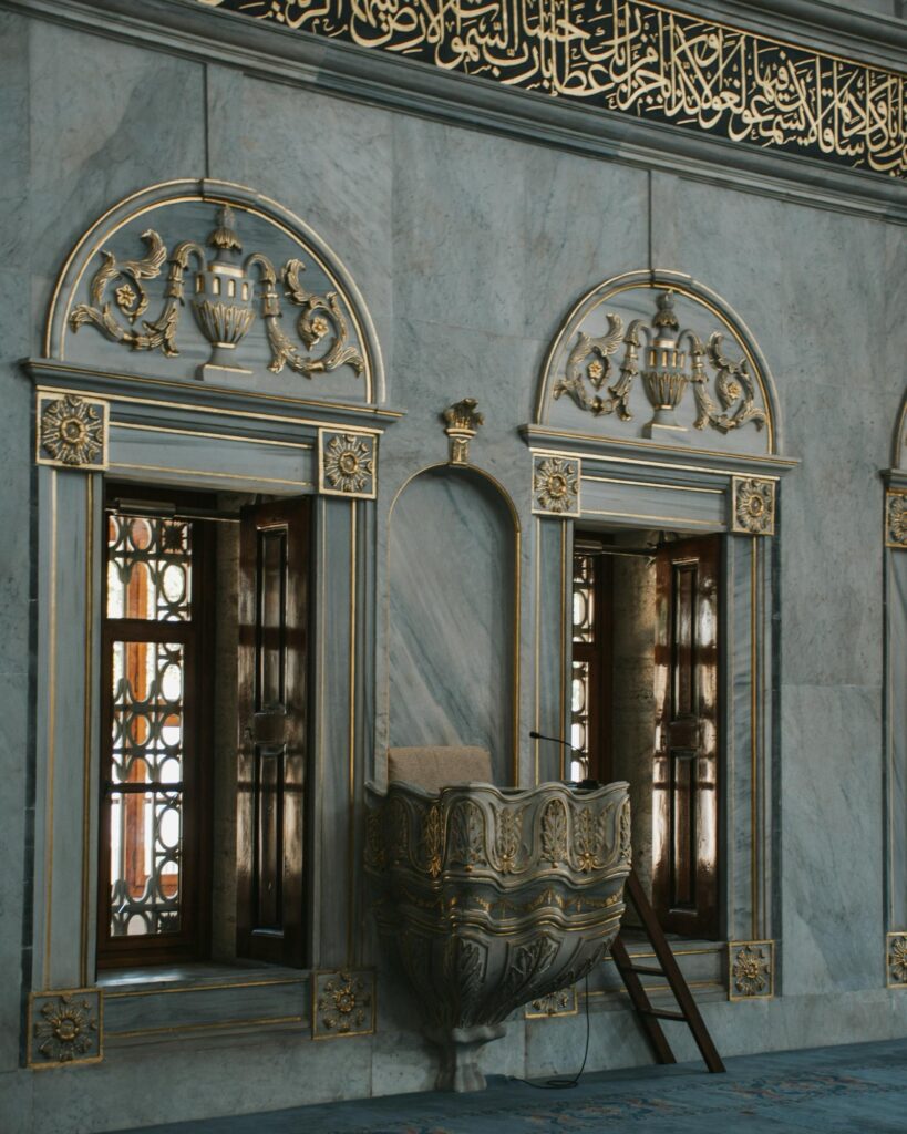 الزخارف الذهبية، الأبواب الخشبية المزخرفة، والسيراميك العثماني في الحرملك تُضفي طابعاً فنياً ساحراً على صورك.